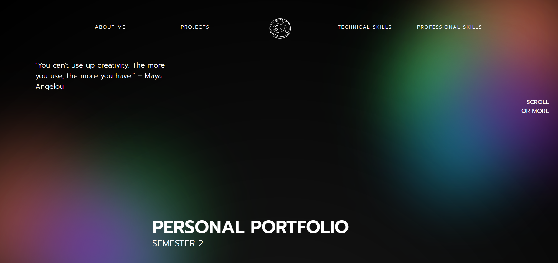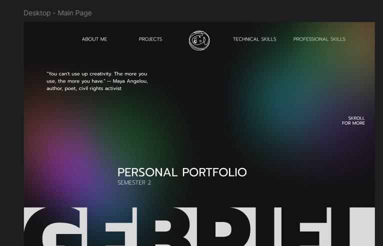 I worked on My Portfolio using the knowledge that I've gained from the bootcamp I attended. For my portfolio I wanted to create the illusion of colorful light that hits the black background to achieve this effect I needed to add blurred shapes to the background and position them in a specific way. In the boot camp that I attended for CSS we learned how to use position absolute, which got me thinking that I could use that property to achieve the effect that I want in my portfolio. After the lesson I went to my teacher to tell him the ideas that I had and how I want to execute them and he assured me that I can use the property to achieve a similar effect. In the end the result that I got was pretty similar to the one that I had created previously in Figma and I am really proud of it and would use this knowledge in the future for other projects.