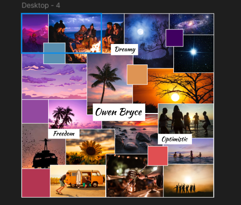 Me and my group worked on creating mood boards for our client in the branding project. We decided that each member is going to create a separate mood board and we are going to send all of them to the client to see which one fits is the most with his style. This was the first mood board that I've ever created so I went online and looked at some inspiration for the look that I wanted to go for. I already had an idea for the style that I was going to use but I needed to figure out what the structure is going to be. After looking at some inspiration I tried making one motherboard but it didn't really look the way I wanted it to so I created a second one that I made more abstract which also matches with the style of the client. In the end we sent all the mood boards and the client liked two of designs made by my groupmates which we combined to make the mood board we ultimately went with. Even though the client didn't choose my design I'm proud of the mood board that I created.