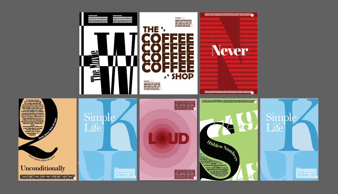I had a lecture about typography and the different fonts and typefaces we use. As an assignment we had to make some typography posters using Adobe Illustrator. At first, I had some ideas that I visualized but after that I had to look for some inspiration which was highly advised by the teacher. I found some really interesting posters online that I decided to recreate but also to add my own spin on. In the end I created some really cool posters that I am very proud of and also found some useful tools in Illustrator that I will for sure will use again. I talked with my teacher and showed him the work that I did. His feedback was, now that I have the skill I need to go bigger and find more techniques to incorporate in my work. This whole assignment taught me a lot and I would definitely use the skills I acquired in the future.