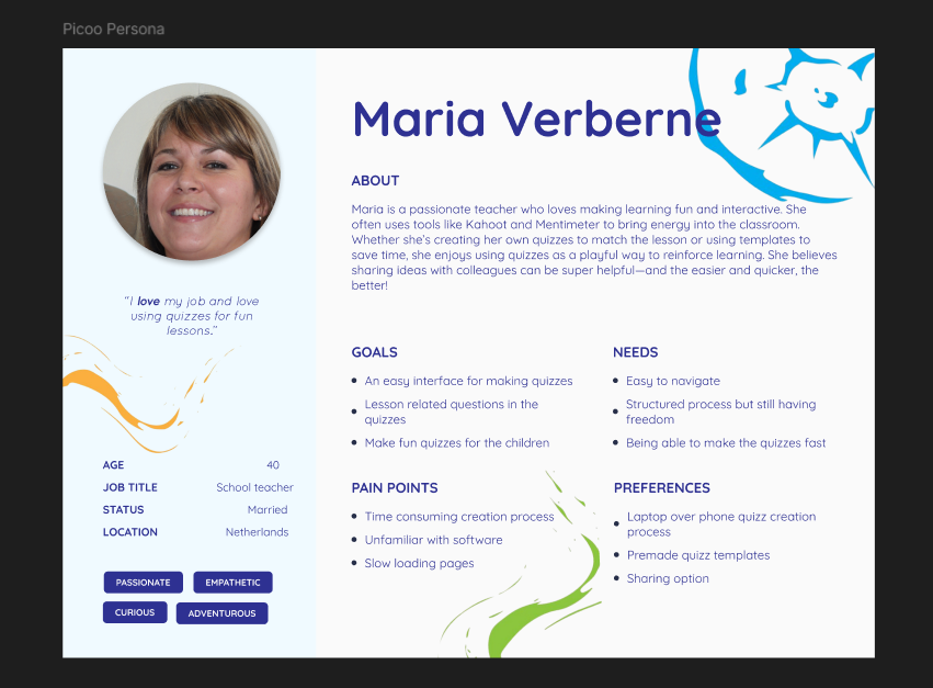 For my second project for the second semester me my group work with a new company named Picoo. They create a device for elementary school children marketed as an interactive gaming system designed to promote outdoor play and physical activity in children. It integrates technology with outdoor activities to provide an engaging and educational experience. They have a game called Quizstaffete that is a quiz game using their devises. For now they only have 5 quizzes in English and 11 quizzes in Dutch.