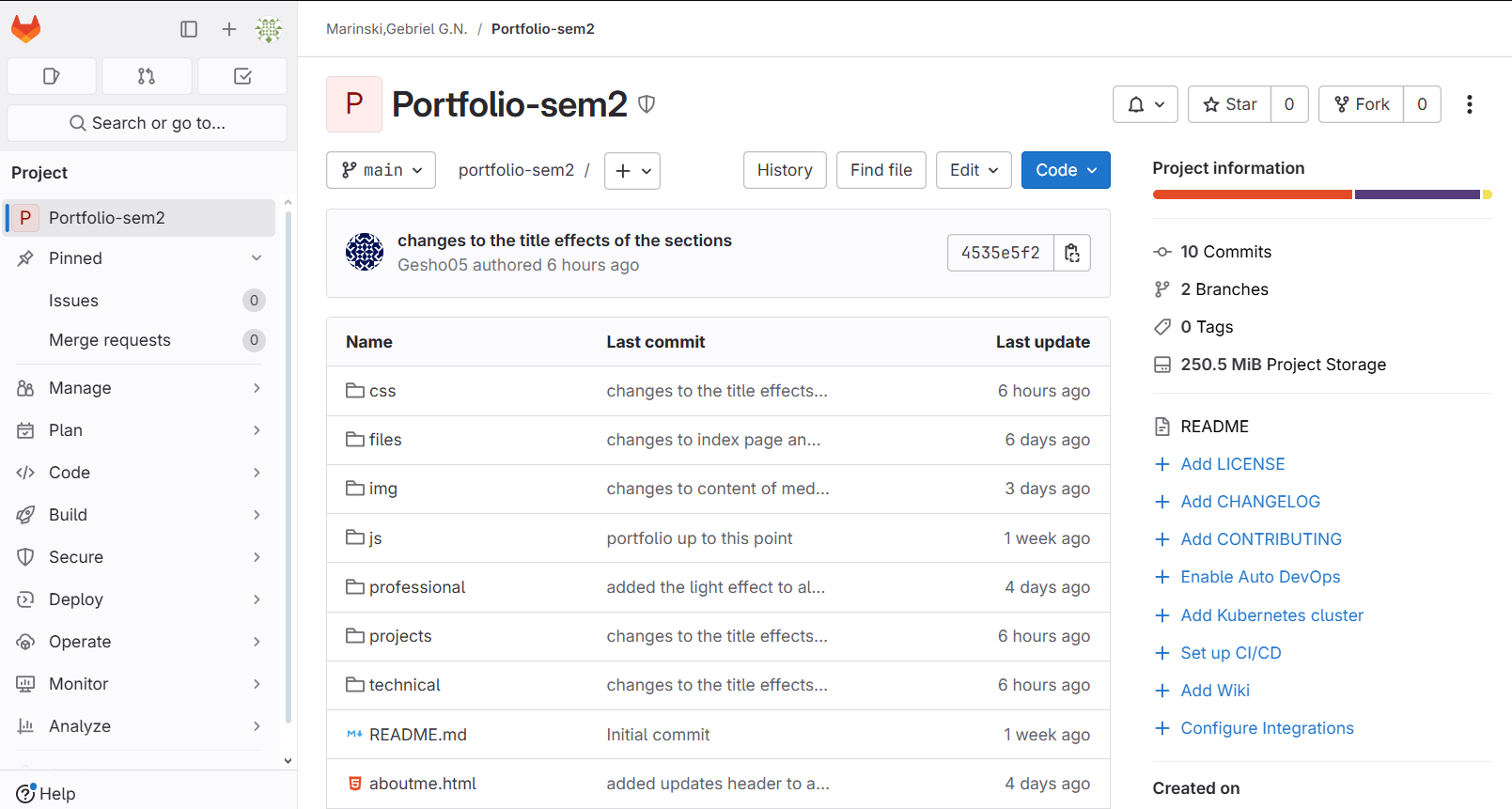 I uploaded My Portfolio to git. After the last assessment one of the teachers comments were that I need to upload my portfolio to get so that the teachers will have access to the code and also that it would be easier for me to store all the code I have written in one place. So, I uploaded My Portfolio before continuing my work. Another comment that my teachers had was that I need to change the fact that I differentiate the learning outcomes in technical and professional skills and just put them all as “outcomes” in one place. For this reason, I needed to change a little bit about the design of the website, but I didn't want to lose my progress since I didn't know how the redesign would look. So, I created a separate branch where I started redesigning. After I was done with the redesign and was sure that the goal was completed, I merged the branch with the main one so I can continue my work on My Portfolio. In the future I will definitely start uploading to git from the very beginning so that I can have access to all the work I've done even after changing something.