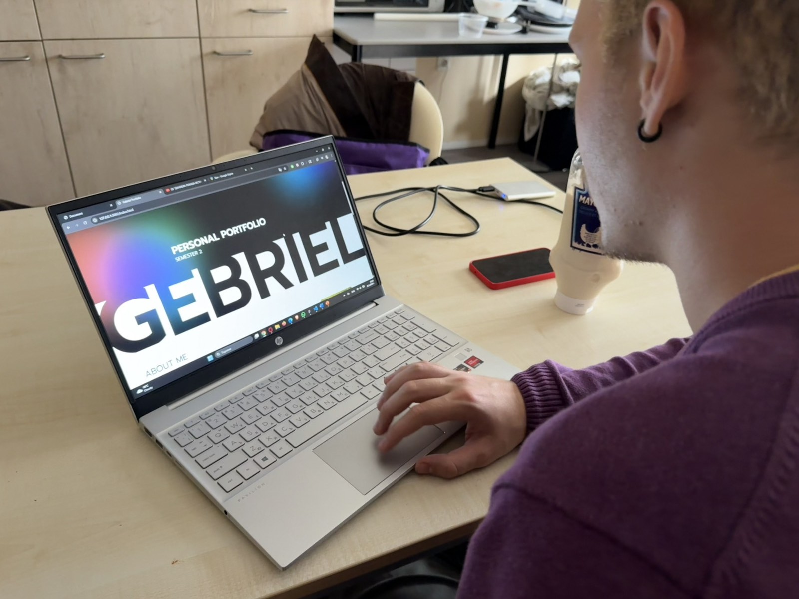 I coded the base of my portfolio. After I was done with the Figma prototype of my portfolio the next step was to code the design. I started by creating the index page and working on the pages for the learning outcomes. My goal was to have the base structure of where all the proofs are going to be and to be able to add them to the site for the second portfolio review without going into too many details like making it responsive or adding animations. After I was happy with the index page I started working on the outcomes page. I made it look somewhat like the Figma design but ran into some problems with the layout so I had to go to my teacher for help. He helped me fix the layout and some of the other problems I ran into along the way like placing the light effects in the right places. I completed the base of the outcomes page and also the projects page so the next thing I had to do was to fill the website with the information that I had previously written down. After I was done, I had some spare time to work on some of the details. I started adding the photos to the index page and working on the “about me” page. In the end I have the base done and for the next review I'm going to focus on making it interactive and adding all the details that I have in my mind.