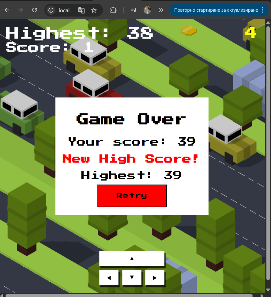 For my project x decided to recreate the popular mobile game Crossy Road. In this game a character in this game a character moves across a map trying to avoid static and moving obstacles like trees and cars. I used the tutorial to build the base of the game and then continued forward working on my own. The tutorial helped me recreate the game mechanics and build basic 3D models. There were some things that were missing and I had to fix like the character being able to move even after they are hit by an obstacle or the map being cut off. After fixing those issues I redesigned the models myself To give them a personal touch while still trying to keep the style have the original game in mind. I also included some additional features that will suggestions from peers and teachers feedback or my own ideas. I added a coin system where the character can collect coins throughout the map as a currency. As feedback from one of my teachers I received the idea to make it's so when the character escapes a moving obstacle in the last moment it gives an additional point. I included that feature too. Overall I'm very proud of myself for doing this project not only because they used a new tool I've never used before (Three.js) to build it but also showed me the world of game design.